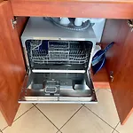 Elektromos vízforraló, hűtő és konyhai edények szintén biztosított az ön kényelme érdekében.